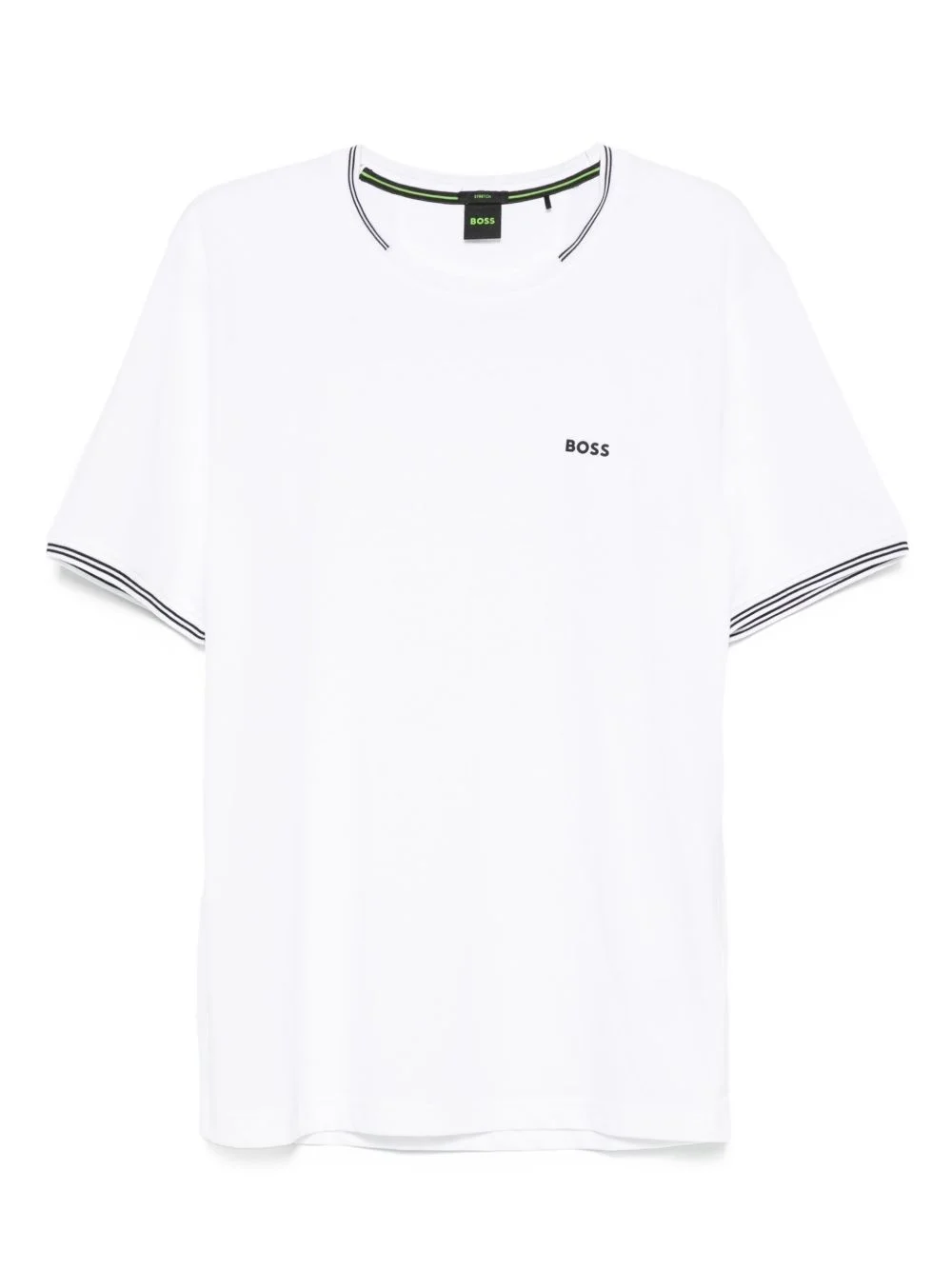 tipped crew-neck t-shirt Highlights - White - Crew neck - Short sleeves - Tipped detailing - Straight hem - Minimal branding Imported Composition Cotton 92%, Elastane 8% SIZE & FIT Model measurements Height 6 ft 2 in(1.87 m) Bust/Chest 37.79 in(96 cm) Hips 37.79 in(96 cm) Waist 30.31 in(77 cm) FittingInformation Designed for a regular fit allowing for a comfortably loose fit throughout the body Made from a midweight stretch fabric, this piece offers elasticity and flexibility when worn Washing instructions Machine Wash
