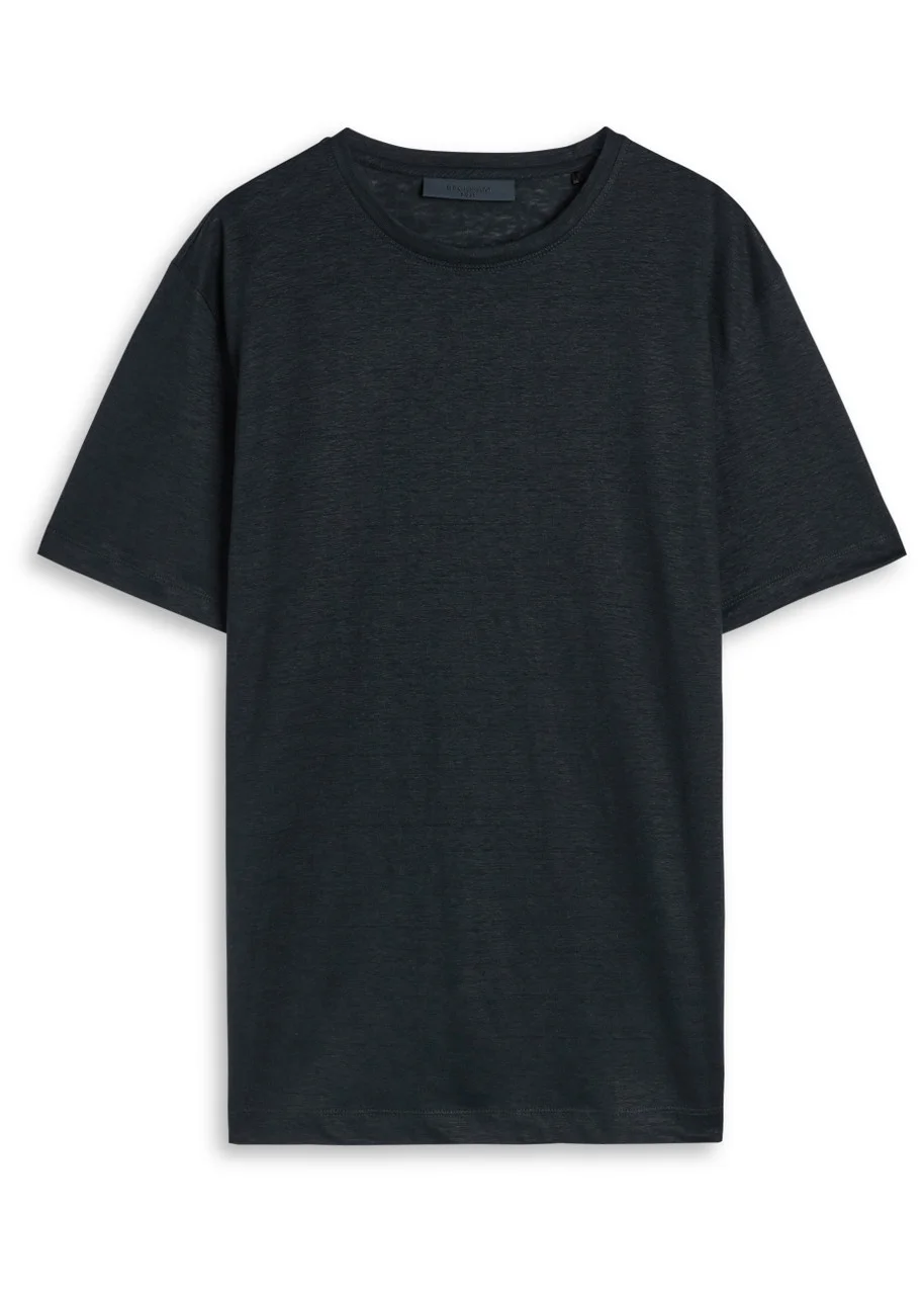 Info & Care Boss X David Beckham linen T-shirt Ribbed crew-neck, designer embroidery at hem, side splits Slips on 100% linen Hand wash Size & Fit Length shoulder to hem: 28 inches/ 71cm Midweight Relaxed fit Model is 6'1"/ 185cm, chest size 38 inches and wears a size medium