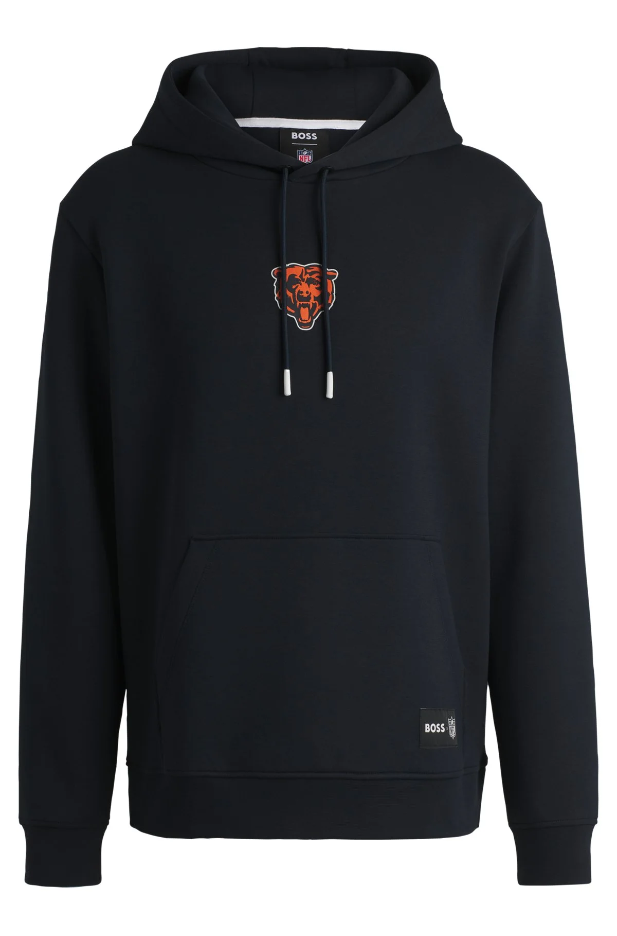 SIZE AND FIT The model wears a size M and is 6'2" tall with a, 38" chest, 30" waist and 35" hips. DETAILS Woodson_NFL - 50534560 A regular-fit hoodie with team logos and special branding by BOSS. This layer is crafted in soft interlock fabric blended with cotton and stretch. BOSS x NFL is a limited capsule that spotlights 22 popular NFL teams, celebrating the lifelong commitments that their players and fanbase make. Neckline: Hooded Ribbed cuffs QUALITY & CARE INSTRUCTIONS Iron Low Heat Machine Wash Cold Gentle Quality: 48% Polyester, 47% Cotton, 5% Elastane Do Not Bleach Do Not Tumble Dry Do Not Dry Clean
