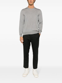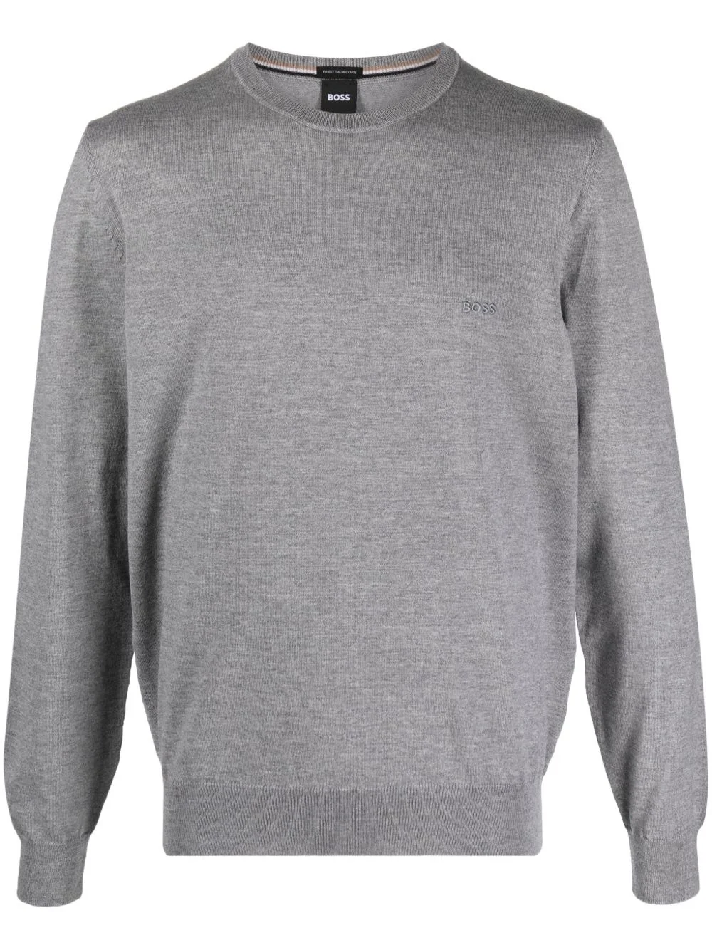 fine-knit virgin wool jumper Highlights - Open grey - Virgin wool - Fine knit - Knitted construction - Crew neck - Long sleeves - Embroidered logo at the chest - Ribbed cuffs and hem Imported Composition Virgin Wool 100% SIZE & FIT Model measurements Height 6 ft 2 in(1.89 m) Bust/Chest 37.79 in(96 cm) Hips 37 in(94 cm) Waist 29.92 in(76 cm) FittingInformation Designed for a regular fit, offering a comfortable loose fit throughout the body Made with a midweight knit, this piece offers some stretch This piece fits true to size – take your usual size
