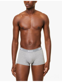 PRODUCT DETAILS - BOSS pack of three stretch-cotton trunks boxer - 95% cotton, 5% elastane - Pulls on - Mid-rise, branded elasticated waistband, supportive panel at front - Machine wash cold - Model is 6ft 2in/1.88m and wears a size medium - Lightweight, slight stretch - For hygiene reasons, this product cannot be exchanged or refunded, unless faulty. Ref: R04352999