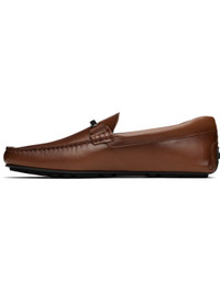 Buffed faux-leather loafers. · Moc toe · Logo plaque at vamp · Padded collar · Rubberized logo patch at heel counter · Treaded rubber sole Supplier color: Medium brown Upper: synthetic. Sole: rubber. Made in Portugal 252085M239002