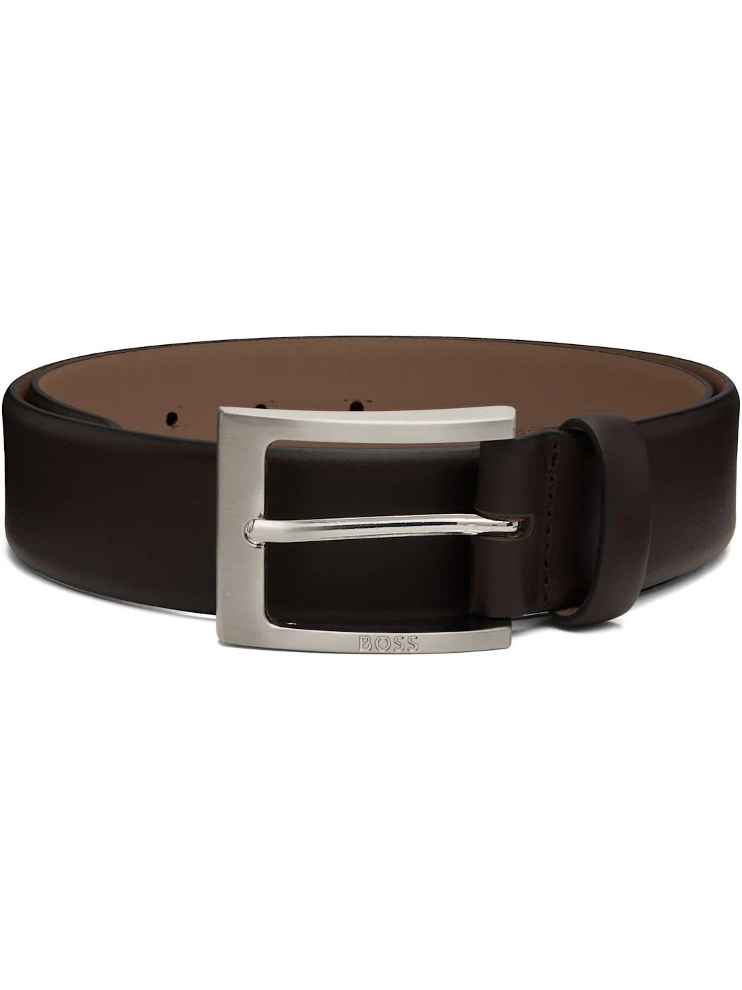 Buffed nappa leather belt. · Logo-engraved pin-buckle fastening · W1.5" Supplier color: Dark brown Leather. Made in Tunisia 252085M131011