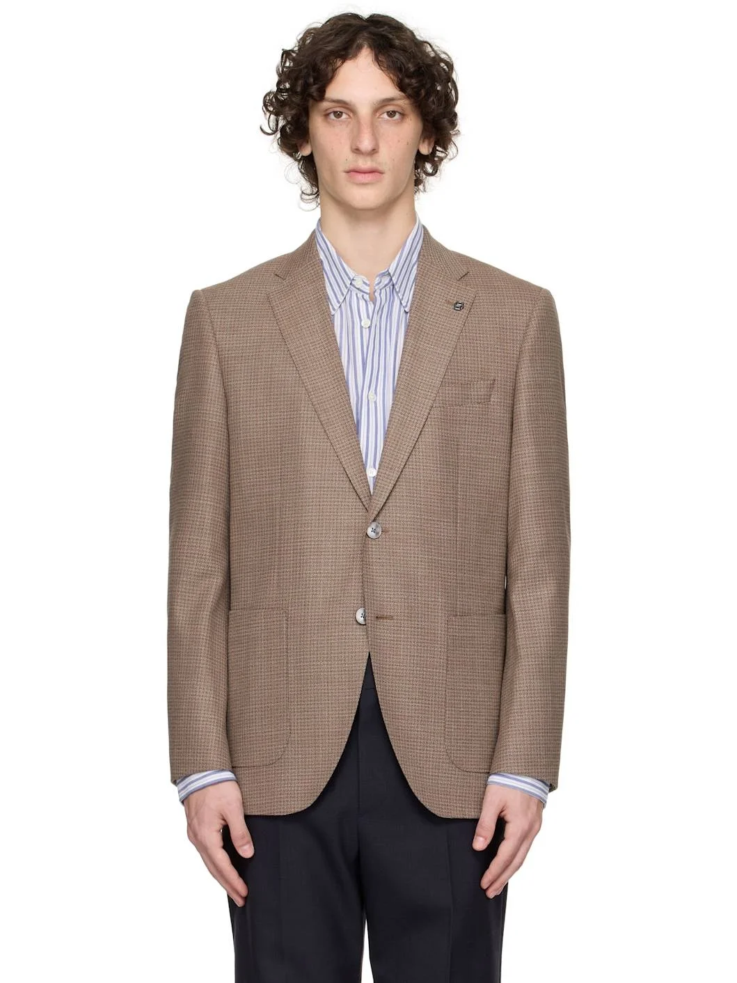 Brown Regular-Fit Patterned Wool Blend Blazer