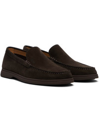 Suede loafers. · Moc toe · Logo embossed at outer side · Treaded rubber sole Supplier color: Dark brown Upper: leather. Sole: rubber. Made in Portugal 252085M231004