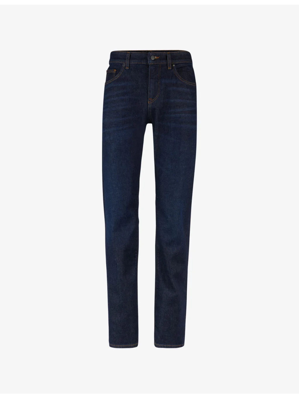PRODUCT DETAILS - BOSS stretch-denim jeans - 94% cotton, 5% elastomultiester, 1% elastane - Exposed button and concealed zip-fly fastening at front - Regular fit, mid rise, belt loops, five pockets, straight leg, branding at the back - Machine wash cold - Model is 6ft 2in/1.88m and wears a size UK 32 - Midweight, slight stretch Ref: R04173166
