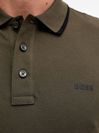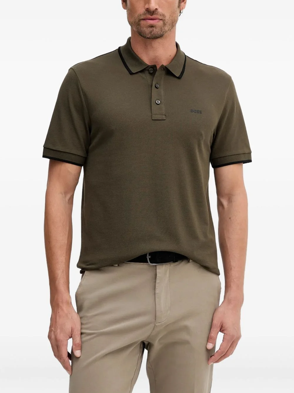 button-fastening polo shirt Highlights - Olive green - Button fastening - Trim detail - Short sleeves - Polo collar - Logo detail Imported Composition Cotton 100% Washing instructions Read Manufacturer Guidelines