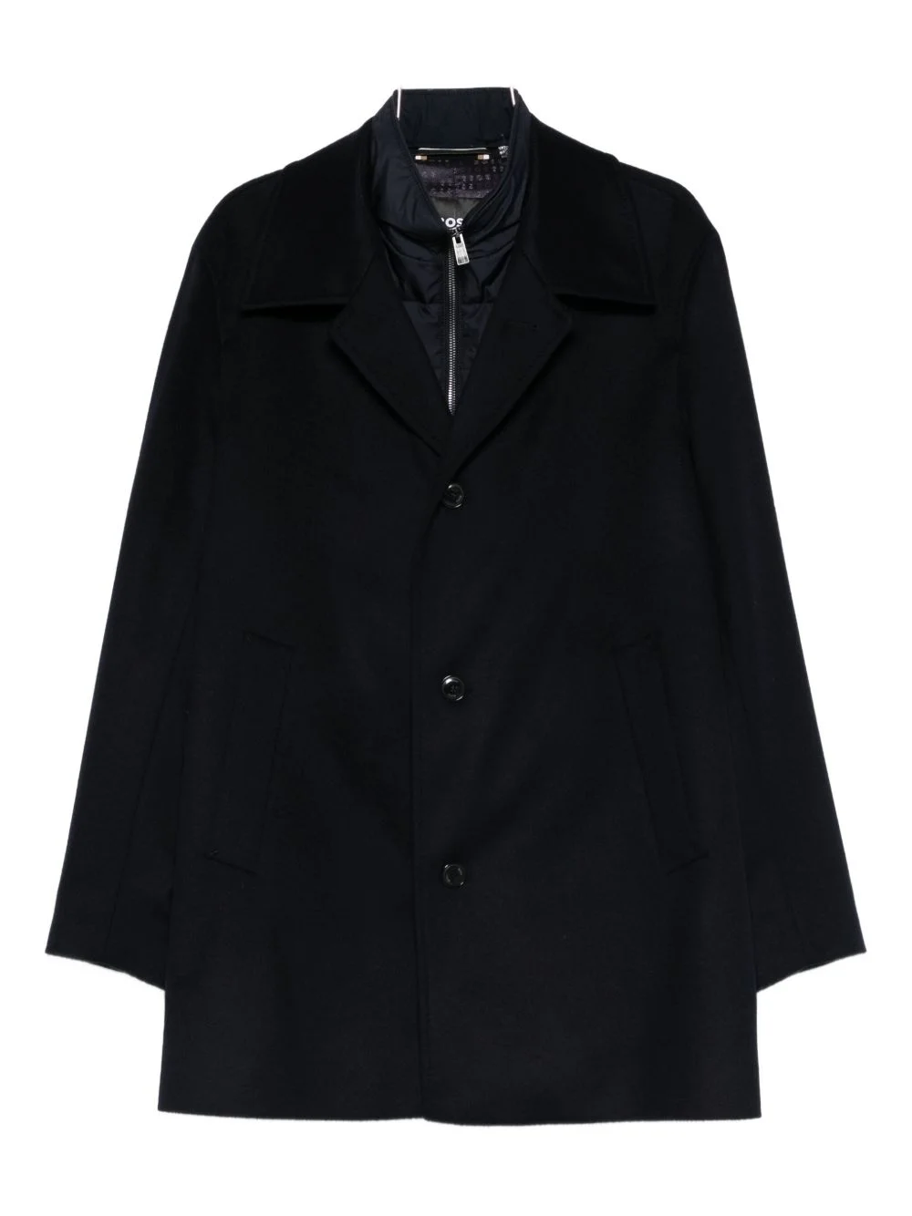 buttoned coat Highlights - Dark blue - Button fastening - Zip fastening - Collar - Pockets - Long sleeves Imported Composition Wool 90%, Cashmere 10% Washing instructions Read Manufacturer Guidelines