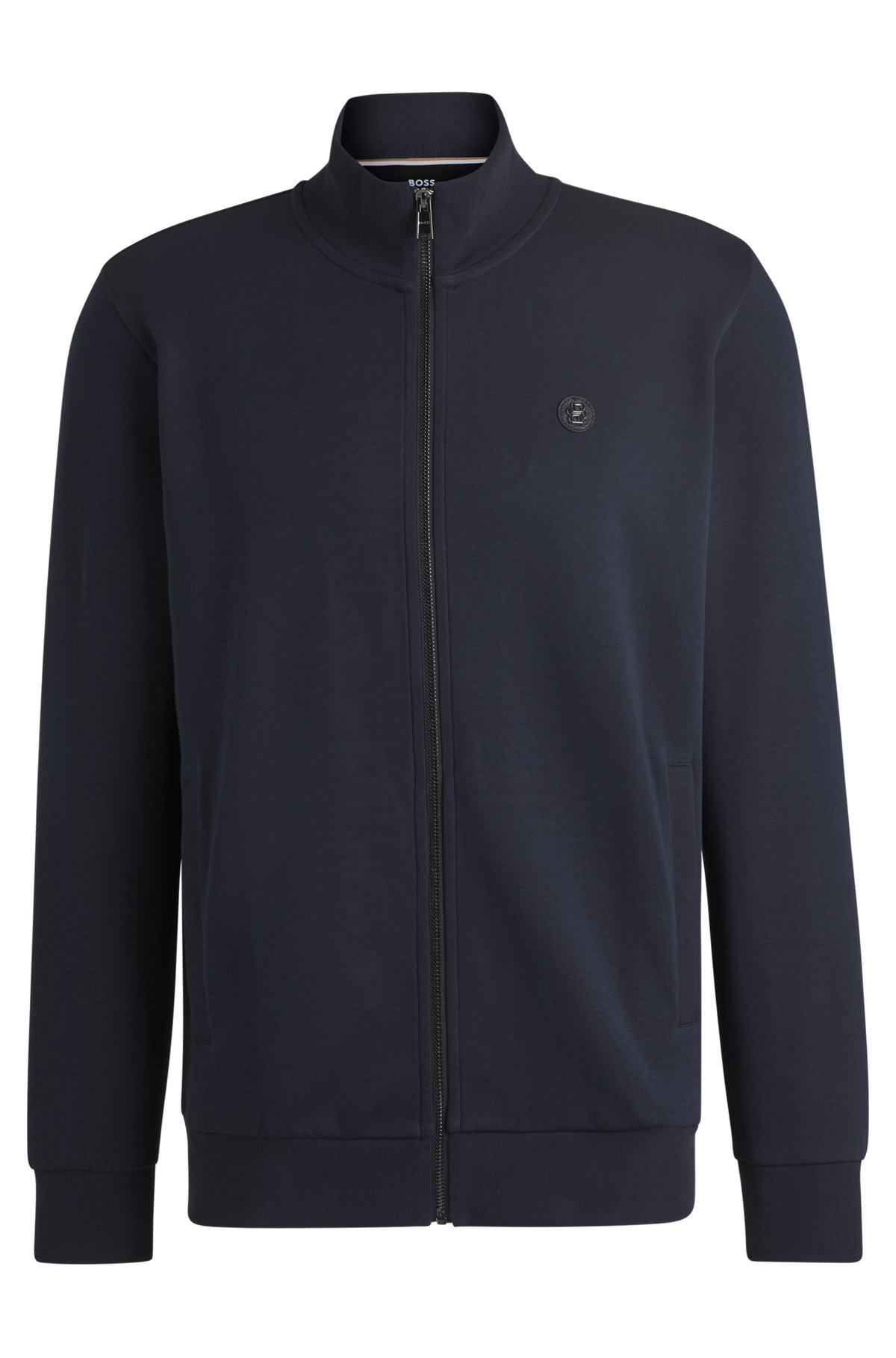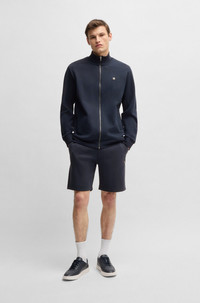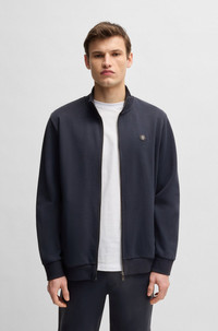 SIZE AND FIT The model wears a size L and is 6'2" tall with a, 39" chest, 30" waist and 36" hips. DETAILS C-Siza 01 - 50523916 A signature zip-up sweatshirt in a straight fit by BOSS. This interlock-fabric layer is trimmed with a Double B monogram. This product is partly made with cotton. Regular fit Neckline: Zip neck Long sleeves Ribbed cuffs Standard length QUALITY & CARE INSTRUCTIONS Iron Low Heat Quality: 86% Cotton, 14% Polyester Machine Wash Cold Gentle Do Not Bleach Do Not Tumble Dry Do Not Dry Clean