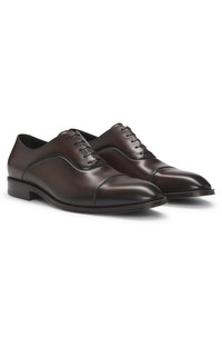 DETAILS Derrek_Oxfr_buctpi - 50530522 Cap-toe Oxford shoes made in Italy by BOSS Menswear. Featuring an anti-slip rubber injection on the sole, this pair is crafted in leather. Sole: Leather/other material Fully lined Laces Packaging: Box QUALITY & CARE INSTRUCTIONS Upper material: 100% Calfskin, Lining: 100% Yak, Sole: 74% Thermoplastic polyurethane , 26% Leather, Innersole: 100% Yak
