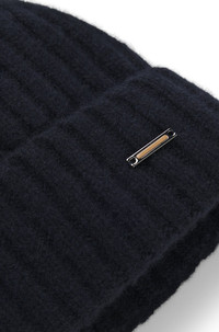 SIZE AND FIT The model wears a size pce. and is 6'1" tall with a, 36" chest, 29" waist and 37" hips. DETAILS Treat yourself to luxurious warmth in chilly snaps with the 100% cashmere knit of this BOSS Menswear beanie hat. Thick ribbed structure. Metal plaque trim. L-Heroe_Hat - 50551001 QUALITY & CARE INSTRUCTIONS Iron Medium Heat Do Not Tumble Dry Cold, gentle machine wash; reduced spin speed. Do Not Bleach Material: 100% Cashmere Dry Clean Only