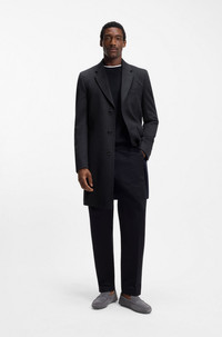 SIZE AND FIT The model wears a size 40R and is 6'1" tall with a, 36" chest, 29" waist and 37" hips. DETAILS Layer some luxury over your tailored looks with the pure cashmere of this BOSS Menswear coat. Silken lining. Cut to a modern slim fit. Slim fit Notched lapels Number of buttons: 3 Welt chest pockets Pockets top: Side-entry pockets Button cuffs Back vent Fully lined H-Hyde-254_Lux - 50551189 QUALITY & CARE INSTRUCTIONS Do Not Wash Reduced Dry Clean Do Not Bleach Material: 100% Cashmere, Sleeve lining: 100% Viscose, Body Lining: 100% Cupro Do Not Tumble Dry Iron Low Heat