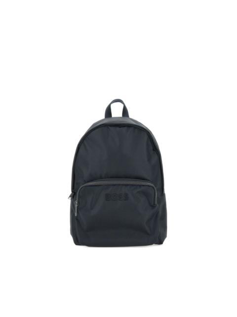 Catch 3.0 logo-applique backpack Highlights - Black - Recycled polyester - Twill weave - Padded panels - Applique logo to the front - Branded zip puller - Signature stripe detail to the rear - Internal logo patch - Top zip fastening - Single flat top handle - Two padded adjustable shoulder straps - Front zip-fastening compartment - Main compartment - Internal padded laptop pocket - Internal zip-fastening pocket - Full lining Made in Italy Composition Outer: Recycled Polyester 100% SIZE & FIT Measurement DEPTH 5.51 in(14 cm) HEIGHT 16.53 in(42 cm) WIDTH 11.02 in(28 cm)