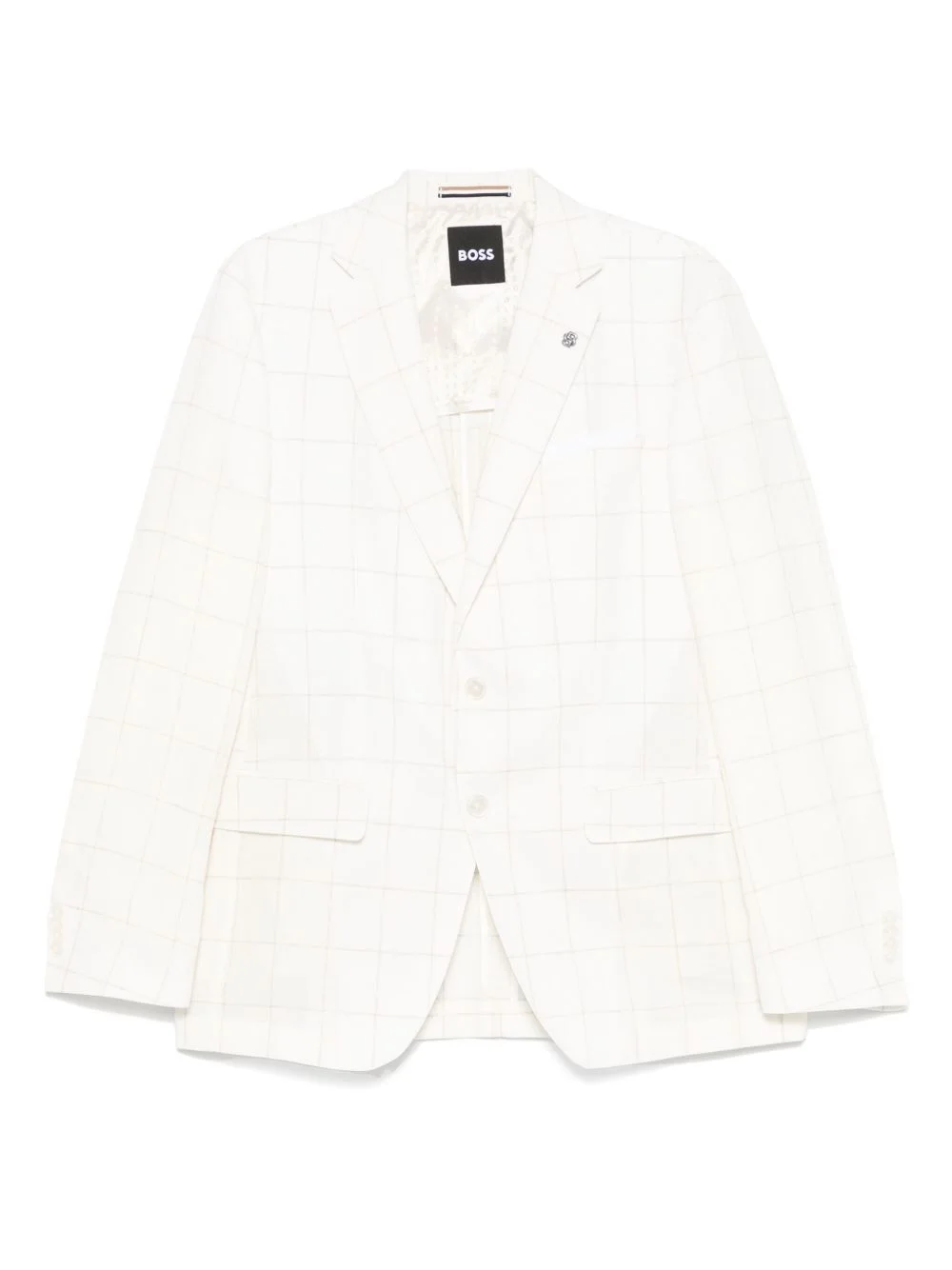 checked blazer Highlights - White - Front button fastening Imported Composition Lining: Viscose 100% Outer: Linen/Flax 55%, Viscose 32%, Virgin Wool 13% SIZE & FIT Model measurements Height 6 ft 1 in(1.85 m) Bust/Chest 38.58 in(98 cm) Hips 37 in(94 cm) Waist 30.31 in(77 cm) FittingInformation Designed for a slim fit, offering a comfortable fit that sits just away from the body The vented hem offers movement at the rear Made from a midweight non-stretch fabric