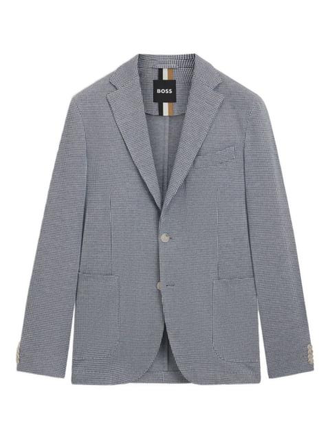 checked cotton-blend jacket Highlights - Grey - Check pattern - Button fastening - Notched lapels - Long sleeves - Patch pockets Imported Composition Outer: Cotton 82%, Polyester 18% Lining: Viscose 100%, Polyester 65%, Cotton 35% SIZE & FIT Model measurements Height 6 ft 2 in(1.87 m) Bust/Chest 37.79 in(96 cm) Hips 37.79 in(96 cm) Waist 30.31 in(77 cm) FittingInformation Designed for a slim fit, offering a comfortable fit that sits just away from the body The vented hem offers movement at the rear Made from a midweight non-stretch fabric Washing instructions Dry Clean Only