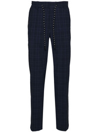 checked mid-rise tapered trousers Highlights - Midnight blue - Stretch-design - Check pattern - Embossed logo to the rear - Exposed-seam detailing - Mid-rise - Belt loops - Elasticated drawstring waistband - Concealed front fastening - Two diagonal pockets to the sides - Two rear welt pockets - Tapered leg Imported Composition Polyamide 76%, Elastane 24%