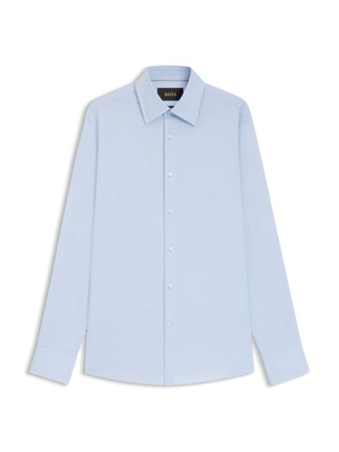 DETAILS With soft colors creating a sophisticated micro check, this BOSS Menswear shirt will elevate any formal look. Straight fit. Breathable Italian-made cotton. Concealed placket. Regular fit Kentkragen L-JOSH-KENT-C-HP-253 - 50544776 QUALITY & CARE INSTRUCTIONS Iron Low Heat Do Not Tumble Dry Do Not Bleach Material: 100% Cotton Machine Wash Cold Gentle Reduced Dry Clean