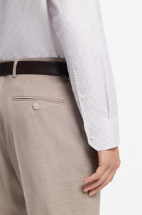 DETAILS Patterned with a classic check on Italian-made cotton twill, this BOSS Menswear shirt is an elevated business option. Tailored to a straight fit. Regular fit Spread collar Angled cuffs H-JOE-SP-C1-261 - 50556497 QUALITY & CARE INSTRUCTIONS Do Not Bleach Iron Medium Heat Do Not Tumble Dry Dry Clean Only Material: 100% Cotton Machine Wash Warm