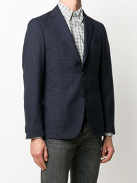 checked single-breasted blazer Highlights - Dark blue/black - Virgin wool - Notched lapels - Front button fastening - Long sleeves - Chest welt pocket - Two patch pockets - Buttoned cuffs Imported Composition Lining: Polyester 100% Outer: Virgin Wool 100% SIZE & FIT Model measurements Height 6 ft 2 in(1.87 m) Bust/Chest 37.79 in(96 cm) Hips 37.79 in(96 cm) Waist 30.31 in(77 cm) FittingInformation This piece fits true to size. We recommend you get your regular size Classic fit Made with a mid-weight non-stretch fabric Washing instructions Machine Wash