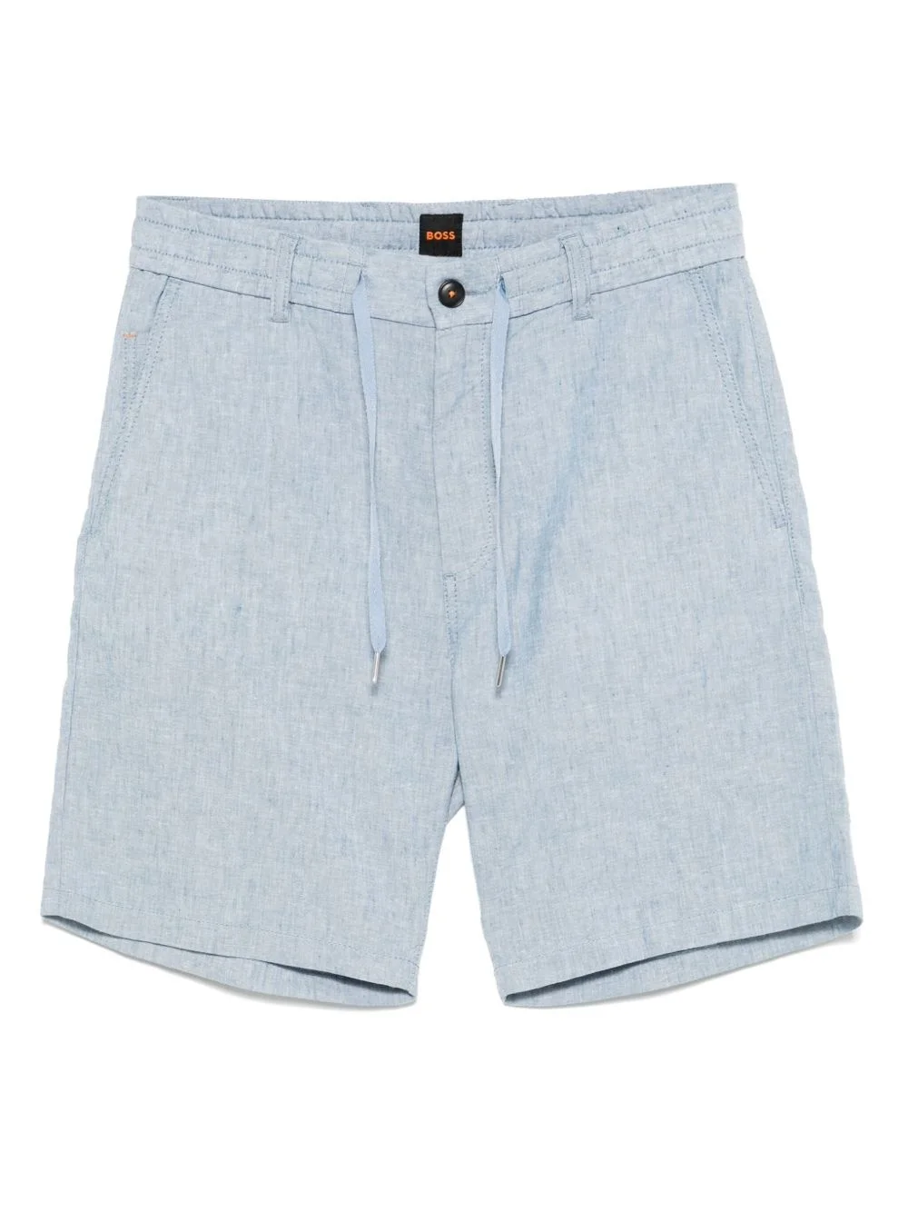chino shorts Highlights - Light blue Imported Composition Outer: Linen/Flax 64%, Polyester 36% Lining: Cotton 100% SIZE & FIT Model measurements Height 6 ft 2 in(1.87 m) Bust/Chest 36.22 in(92 cm) Hips 37 in(94 cm) Waist 27.95 in(71 cm) FittingInformation A slim-fit design that sits comfortably just away from the leg The elasticated waist allows for a comfortable fit Made from a midweight non-stretch fabric