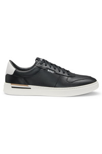 DETAILS Clint_Tenn_ltvpN - 50542538 With a rubber outsole for easy grip, these low-top BOSS Menswear trainers will go with every look. Smooth leather uppers and signature-stripe details. Laces Fully lined Packaging: Box QUALITY & CARE INSTRUCTIONS Upper material: 100% Cow leather, Lining: 100% Polyester, 100% Cow leather, 60% Polyester, 40% Polyurethane, Sole: 100% Rubber, Innersole: 100% Polyester