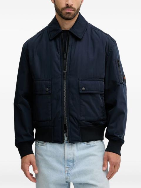 collared pocket jacket Highlights - Blue - Zip fastening - Point collar - Chest pockets - Pocket at the sleeve - Ribbed hem Imported Composition Polyester 100% Washing instructions Read Manufacturer Guidelines