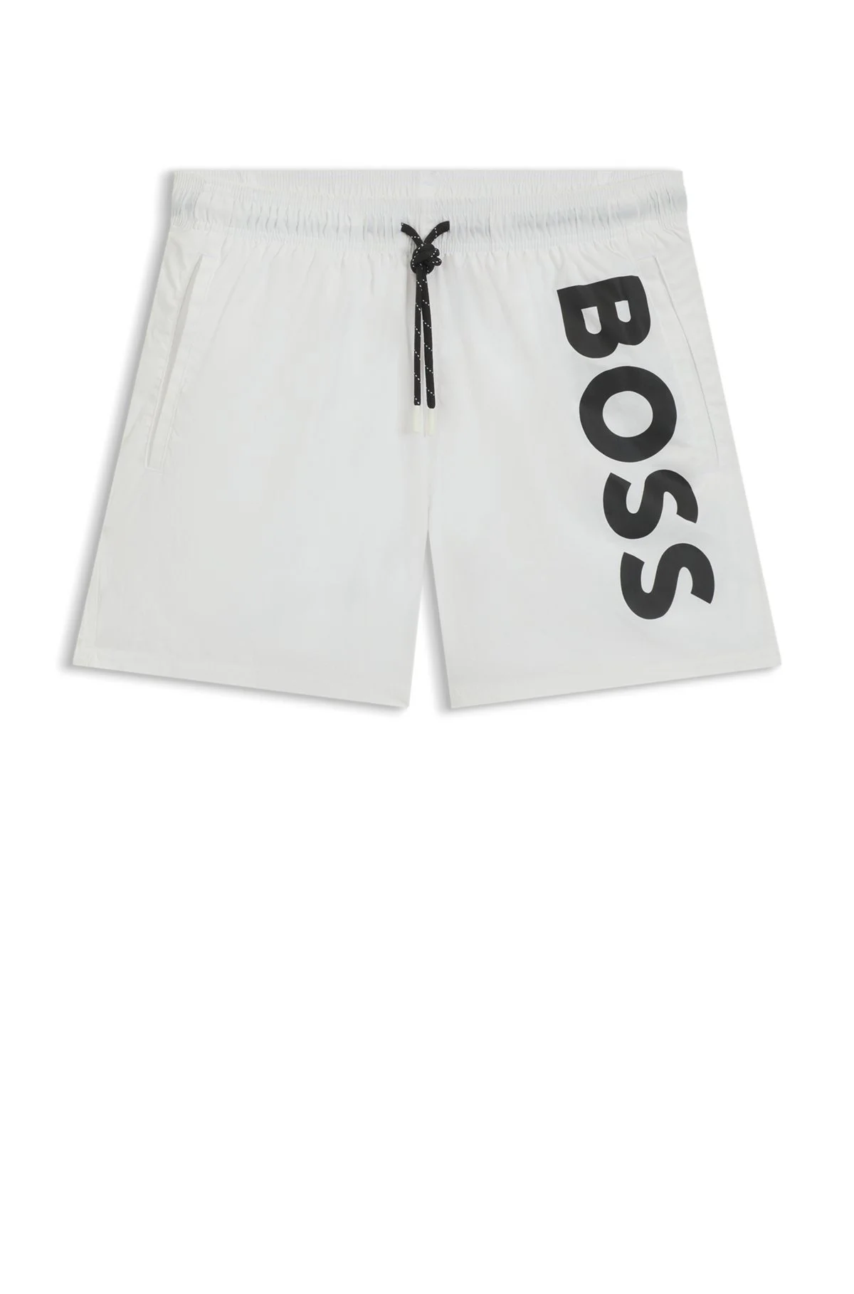 DETAILS Octopus - 50514502 Adjustable swim shorts by BOSS in quick-drying fabric with full lining and a vertical logo in contrast. QUALITY & CARE INSTRUCTIONS Do Not Dry Clean Do Not Tumble Dry Quality: 100% Polyamide, Lining: 100% Polyester Do Not Bleach Machine Wash Cold Do Not Iron