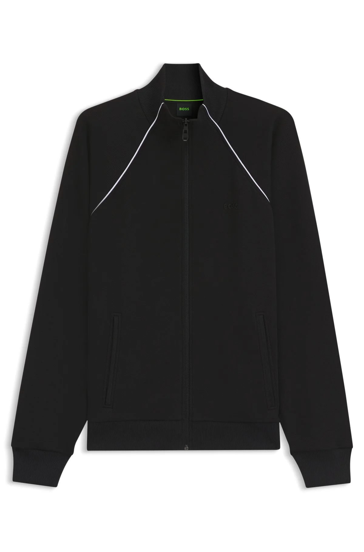 DETAILS Layer up in sporty style with the tennis-inspired cutlines and contrast piping of this regular BOSS Menswear sweatshirt. Pique. Logo detail. Regular fit Neckline: Stand collar Fastening top: Zip closure Pockets top: Welt pockets Long sleeves Ribbed cuffs Standard length SW_Join Skaz - 50553566 QUALITY & CARE INSTRUCTIONS Reduced Dry Clean Do Not Tumble Dry Machine Wash Cold Gentle Material: 53% Cotton, 44% Polyester, 3% Elastane, pocketing: 100% Polyester, Ribbing: 95% Cotton, 5% Elastane Iron Low Heat Do Not Bleach