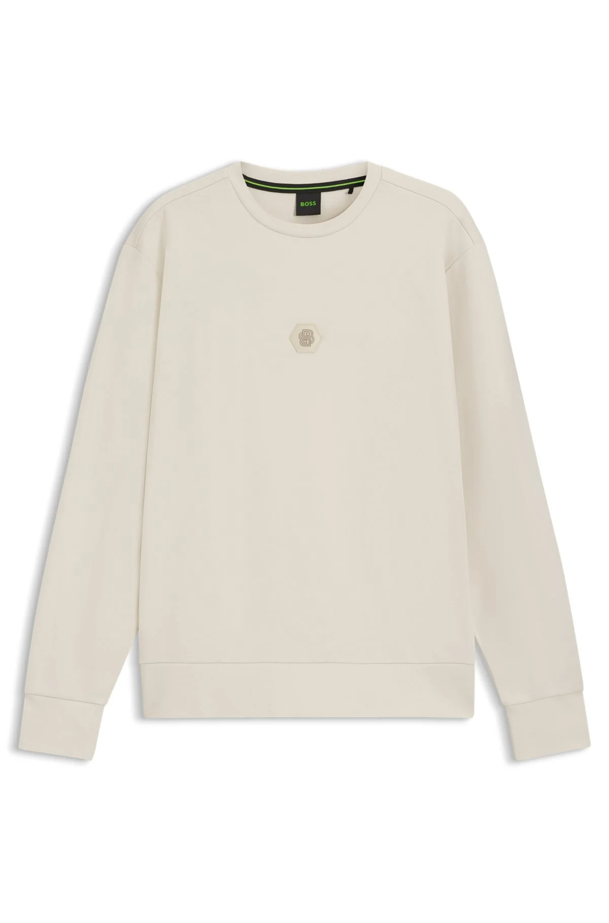 SIZE AND FIT The model wears a size M and is 6'0" tall with a, 38" chest, 29" waist and 38" hips. DETAILS Ideal for everyday wear, this relaxed-fit BOSS Menswear sweatshirt features a hexagonal Double B monogram patch. Ultimate comfort. Relaxed fit Neckline: Crew neck Long sleeves Self fabric cuffs Standard length CN Future - 50543859 QUALITY & CARE INSTRUCTIONS Machine Wash Cold Gentle Do Not Bleach Do Not Dry Clean Iron Low Heat Do Not Tumble Dry Material: 77% Cotton, 23% Polyester