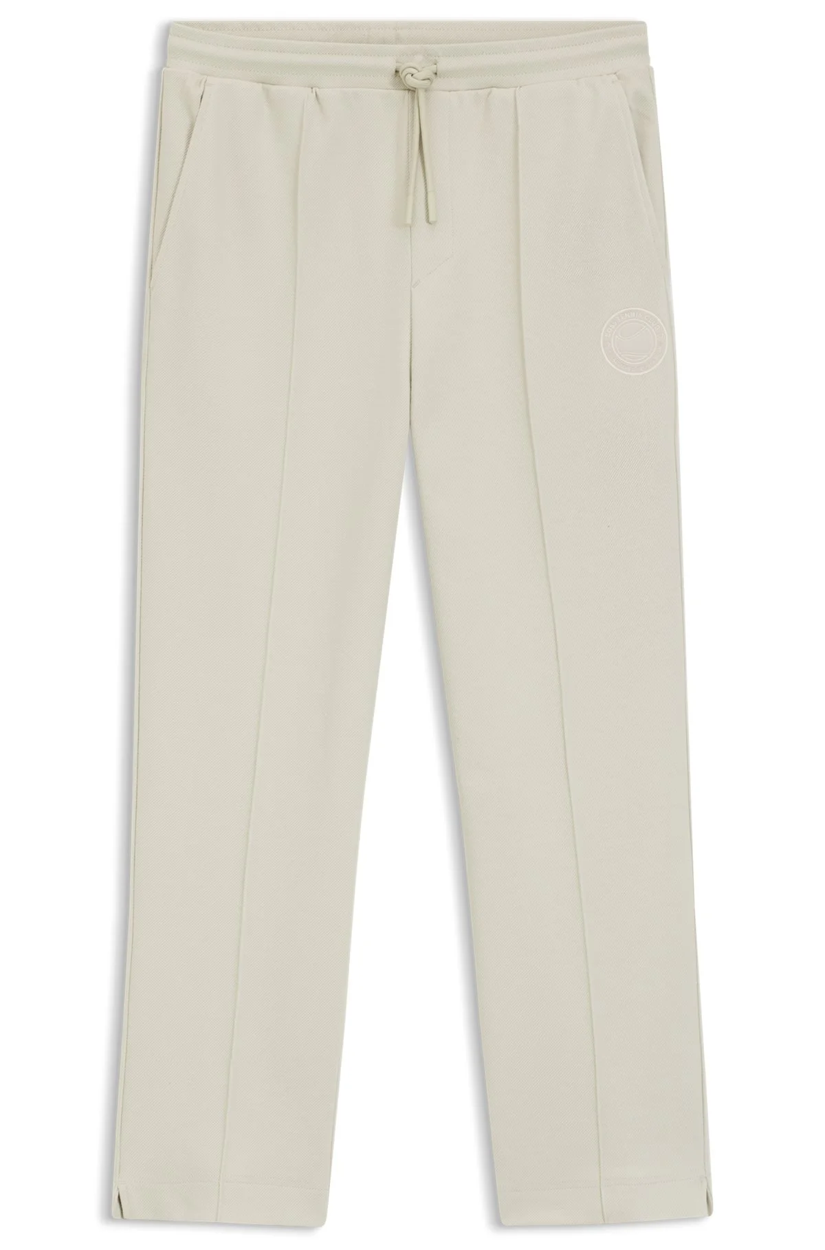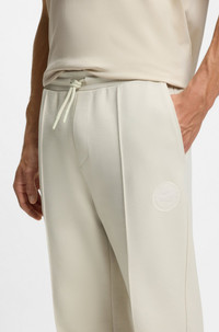 SIZE AND FIT The model wears a size M and is 6'2" tall with a, 38" chest, 30" waist and 37" hips. DETAILS In brushed twill made with cotton and stretch, these relaxed BOSS Menswear tracksuit bottoms are an easy-wear casual option. Tennis-themed BOSS logo. Relaxed fit Regular rise Drawstring Pockets bottom front: Side pockets Pockets bottom back: Welt pocket JT_Join Hurley - 50553685 QUALITY & CARE INSTRUCTIONS Material: 83% Cotton, 14% Polyester, 3% Elastane Machine Wash Cold Gentle Iron Low Heat Do Not Tumble Dry Do Not Dry Clean Do Not Bleach