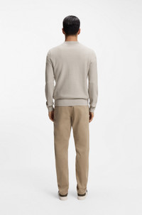 DETAILS Knitted with a characterful structure, this BOSS Menswear sweater is crafted in soft cotton with luxurious cashmere. Logo patch at the chest. Regular fit Regular fit Neckline: Crew neck Long sleeves Standard length Anion_S - 50527584 QUALITY & CARE INSTRUCTIONS Do Not Bleach Do Not Tumble Dry Cold, gentle machine wash; reduced spin speed. Dry Clean Only Iron Low Heat Material: 95% Cotton, 5% Cashmere