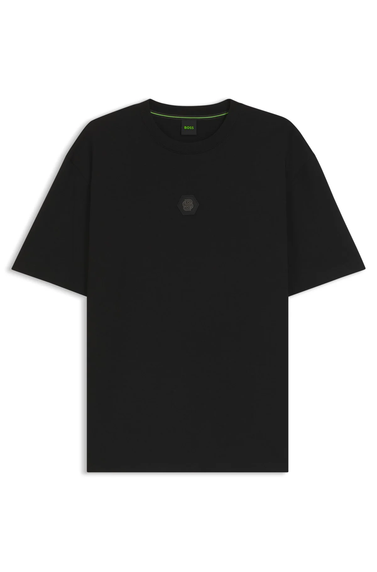 SIZE AND FIT The model wears a size M and is 6'2" tall with a, 36" chest, 31" waist and 38" hips. DETAILS In cotton with a weighty feel, this BOSS Menswear T-shirt showcases the Double B monogram to energize casual looks. Oversize fit Oversized fit Neckline: Crew neck Short sleeves Standard length Tee Future - 50544316 QUALITY & CARE INSTRUCTIONS Iron Low Heat Do Not Tumble Dry Material: 100% Cotton Do Not Bleach Do Not Dry Clean Machine Wash Cold Gentle