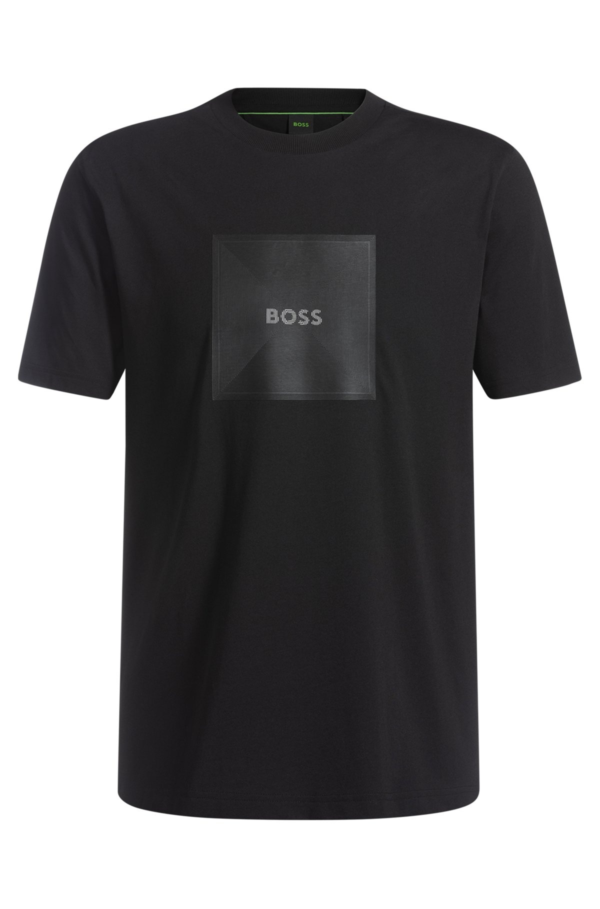 SIZE AND FIT The model wears a size M and is 6'2" tall with a, 34" chest, 28" waist and 33" hips. DETAILS Tee Logo Rib - 50538096 Cut to a comfortable straight fit in breathable cotton jersey, this BOSS Menswear T-shirt will style easily through the week. Printed with fineline logo artwork. This product’s raw material is derived from regenerative agriculture: an approach focused on preservation and restoration that aims to increase biodiversity, preserve water quality and improve soil health while absorbing CO2. Regenerative agriculture also promotes animal welfare and fair working conditions for farmers. Regular fit Neckline: Crew neck Short sleeves Standard length QUALITY & CARE INSTRUCTIONS Iron Low Heat Machine Wash Cold Gentle Quality: 100% Cotton Do Not Bleach Do Not Tumble Dry Do Not Dry Clean