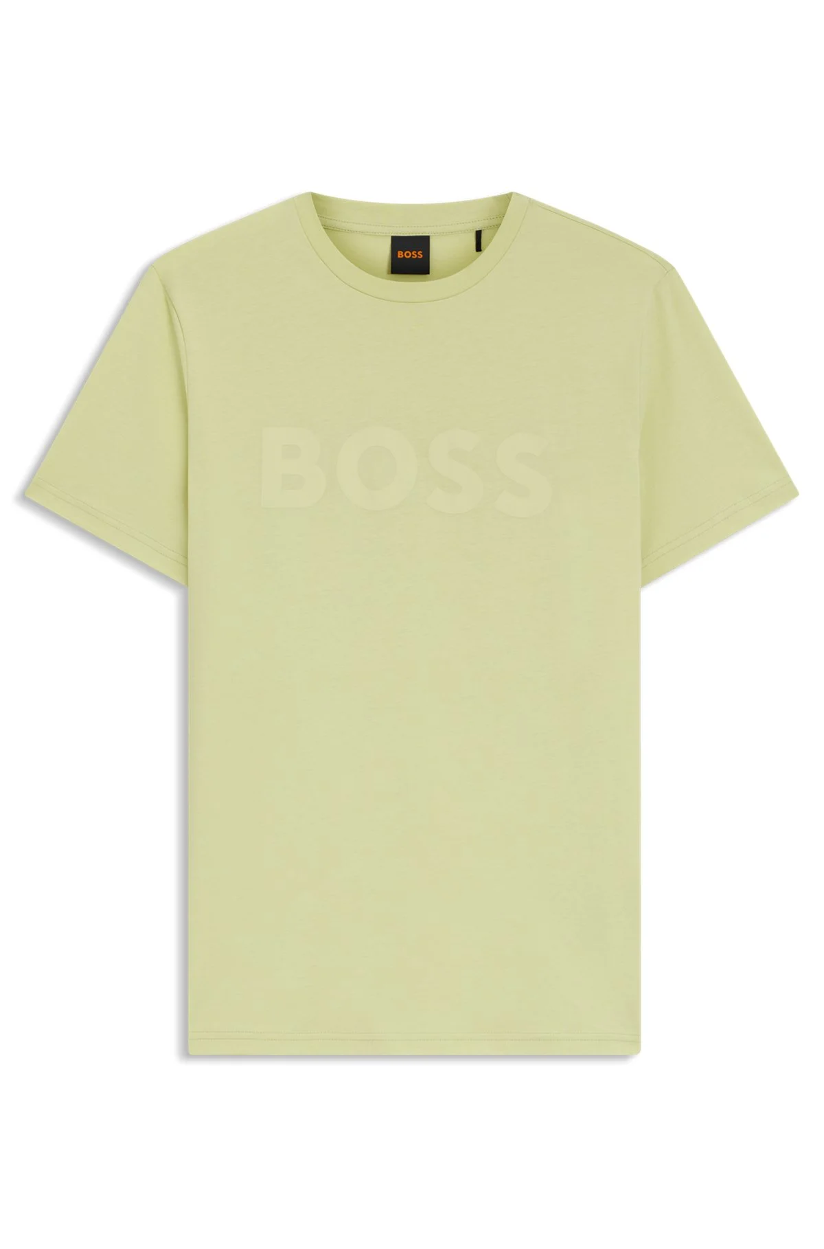 SIZE AND FIT The model wears a size M and is 6'1" tall with a, 37" chest, 29" waist and 35" hips. DETAILS With a bold rubber-print logo in contrast, this BOSS Menswear T-shirt has a casual regular fit. Crafted in soft jersey made from 100% cotton. Regular fit Neckline: Crew neck Short sleeves Thinking 1 - 50481923 QUALITY & CARE INSTRUCTIONS Material: 100% Cotton Machine Wash Cold Gentle Do Not Bleach Do Not Tumble Dry Iron Low Heat Do Not Dry Clean