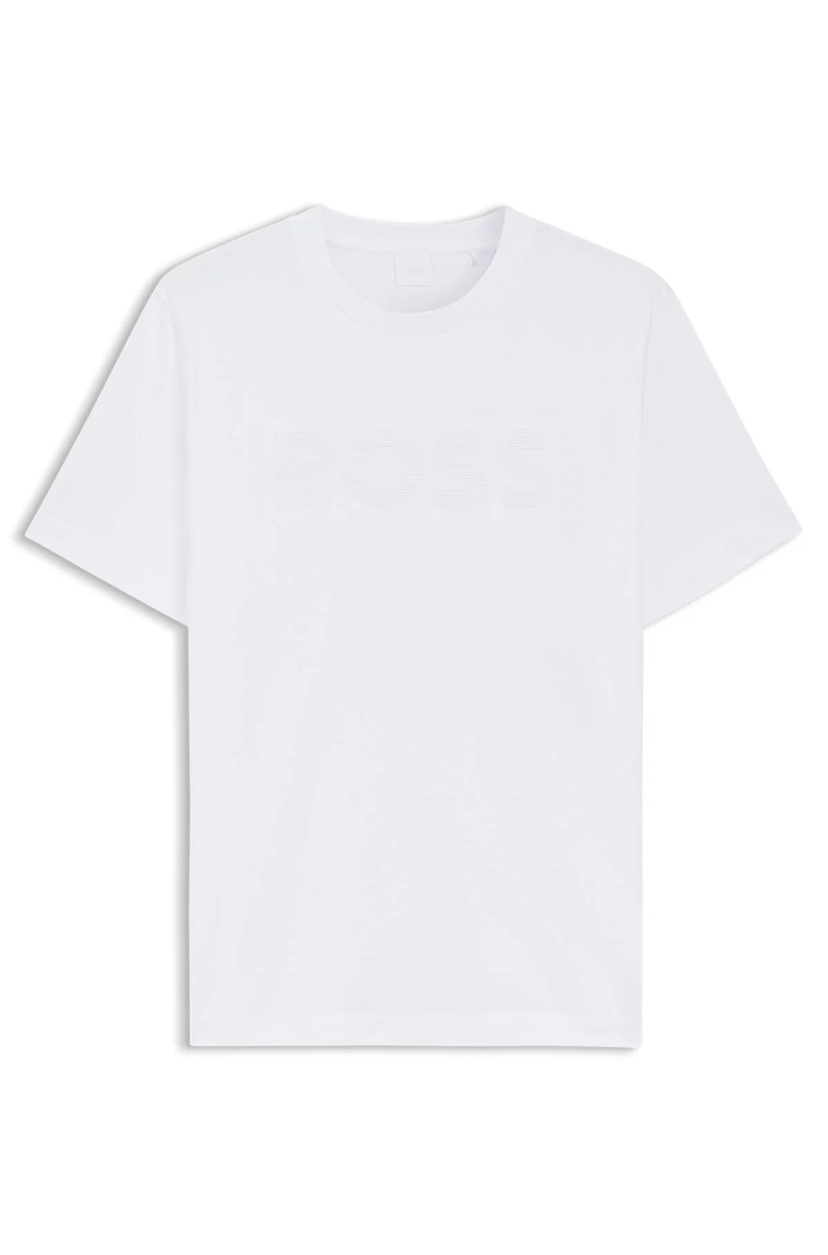 SIZE AND FIT The model wears a size M and is 6'2" tall with a, 37" chest, 30" waist and 37" hips. DETAILS C-Thompson 121 - 50536796 This BOSS Menswear T-shirt will bring distinctive style with tailoring and denim alike. Featuring creative logo artwork on the chest. Breathable cotton. Regular fit. Regular fit Neckline: Crew neck QUALITY & CARE INSTRUCTIONS Iron Low Heat Machine Wash Cold Gentle Quality: 100% Cotton Do Not Bleach Do Not Tumble Dry Do Not Dry Clean