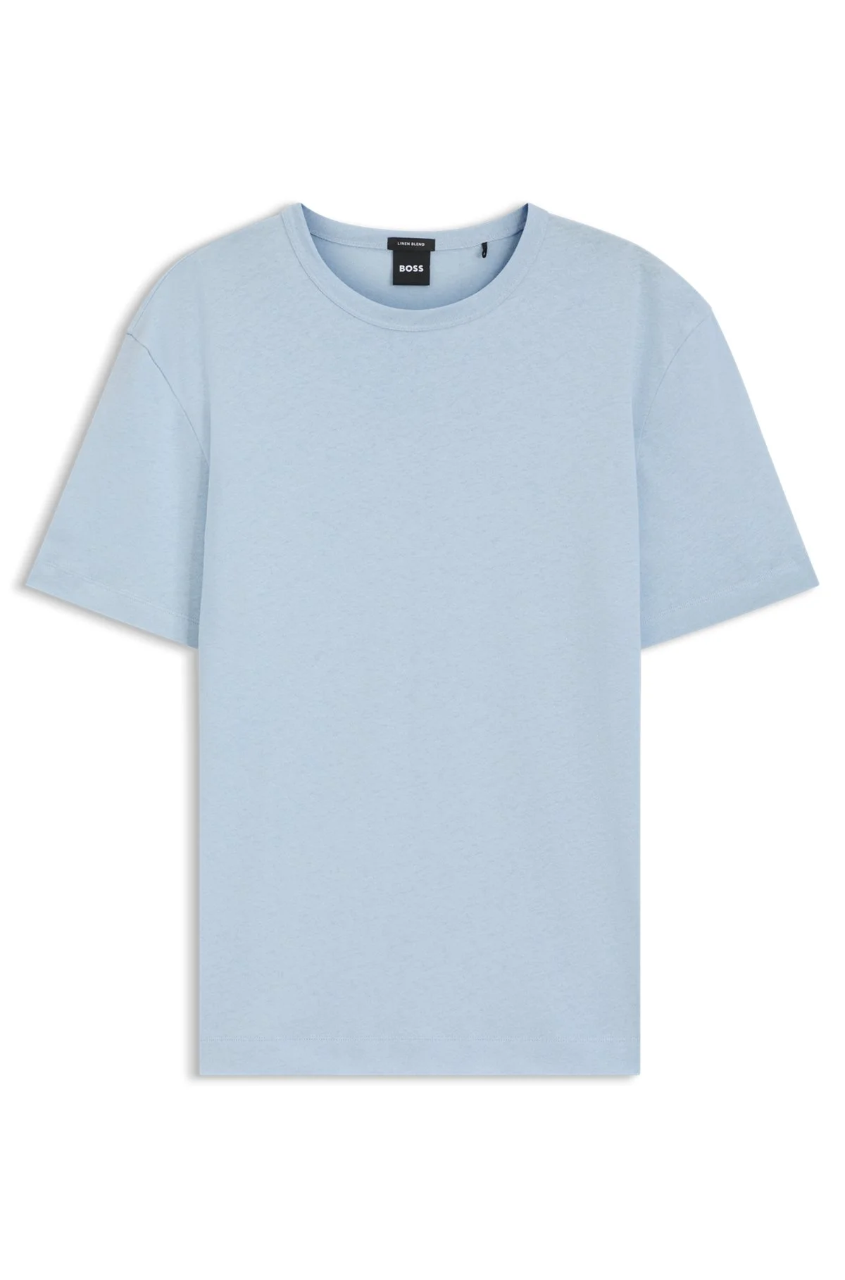 DETAILS Crafted in cotton with linen, this BOSS Menswear T-shirt offers breathable comfort for everyday wear. Easy regular fit. Regular fit Neckline: Crew neck Short sleeves Standard length H-Taut 235 - 50559166 QUALITY & CARE INSTRUCTIONS Iron Low Heat Do Not Tumble Dry Material: 50% Linen, 50% Cotton Do Not Bleach Cold, gentle machine wash; reduced spin speed. Do Not Dry Clean