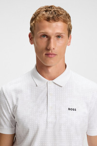 DETAILS Polo AO Zone - 50549358 In stretch-cotton jersey with solid trims and a modern print, this BOSS Menswear polo shirt is a casual essential. Regular fit Logo detail. Regular fit Neckline: Flat-knit collar Number of buttons: 3 Short sleeves Flat-knit cuffs Standard length QUALITY & CARE INSTRUCTIONS Do Not Tumble Dry Machine Wash Cold Gentle Iron Low Heat Quality: 95% Cotton, 5% Elastane Do Not Bleach Do Not Dry Clean