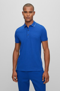 SIZE AND FIT The model wears a size M and is 6'2" tall with a, 38" chest, 29" waist and 36" hips. DETAILS Paule 4_NCSA - 50505832 A slim-fitting polo shirt in cotton pique with a branded underplacket and left-chest logo by BOSS Menswear. Slim fit Neckline: Flat-knit collar Number of buttons: 3 Short sleeves Flat-knit cuffs Standard length QUALITY & CARE INSTRUCTIONS Do Not Bleach Machine Wash Cold Gentle Do Not Tumble Dry Iron Low Heat Quality: 100% Cotton Do Not Dry Clean