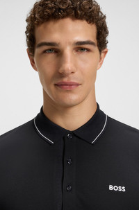 SIZE AND FIT The model wears a size M and is 6'2" tall with a, 38" chest, 31" waist and 37" hips. DETAILS Paule 4 - 50506195 A cotton-pique polo shirt by BOSS Menswear. Cut to a defined fit, this top features a tonal logo and stripe details. Slim fit Neckline: Flat-knit collar Number of buttons: 3 Short sleeves Flat-knit cuffs Standard length QUALITY & CARE INSTRUCTIONS Quality: 100% Cotton Do Not Tumble Dry Do Not Bleach Machine Wash Cold Gentle Iron Low Heat Do Not Dry Clean