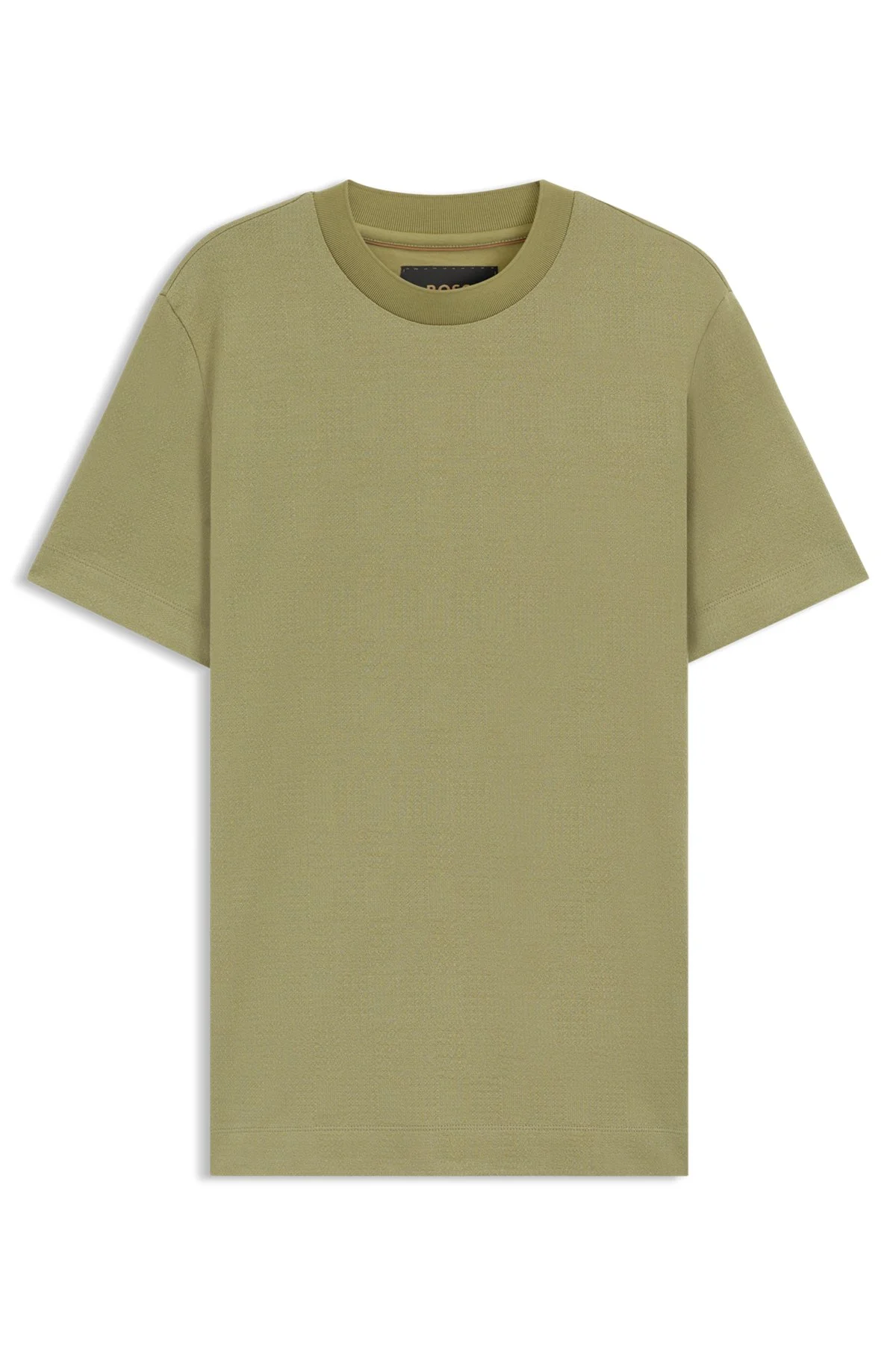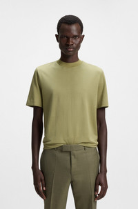 SIZE AND FIT The model wears a size M and is 6'1" tall with a, 33" chest, 31" waist and 33" hips. DETAILS L-Tesar 111 - 50545188 Mercerized for extra softness and sheen, this BOSS Menswear T-shirt has an elevated tonal check. Cotton-silk blend. Straight fit. Regular fit Neckline: Crew neck Short sleeves Side slit QUALITY & CARE INSTRUCTIONS Hand Wash Only Reduced Dry Clean Quality: 82% Cotton, 18% Silk Iron Low Heat Do Not Tumble Dry Do Not Bleach