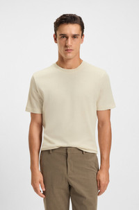 DETAILS C-Thompson 240 - 50549601 Add wintry texture to your look with the herringbone weave of this BOSS Menswear T-shirt. Cut to a straight fit in 100% cotton. Regular fit Neckline: Crew neck Short sleeves QUALITY & CARE INSTRUCTIONS Do Not Tumble Dry Machine Wash Cold Gentle Quality: 100% Cotton Reduced Dry Clean Iron Low Heat Do Not Bleach