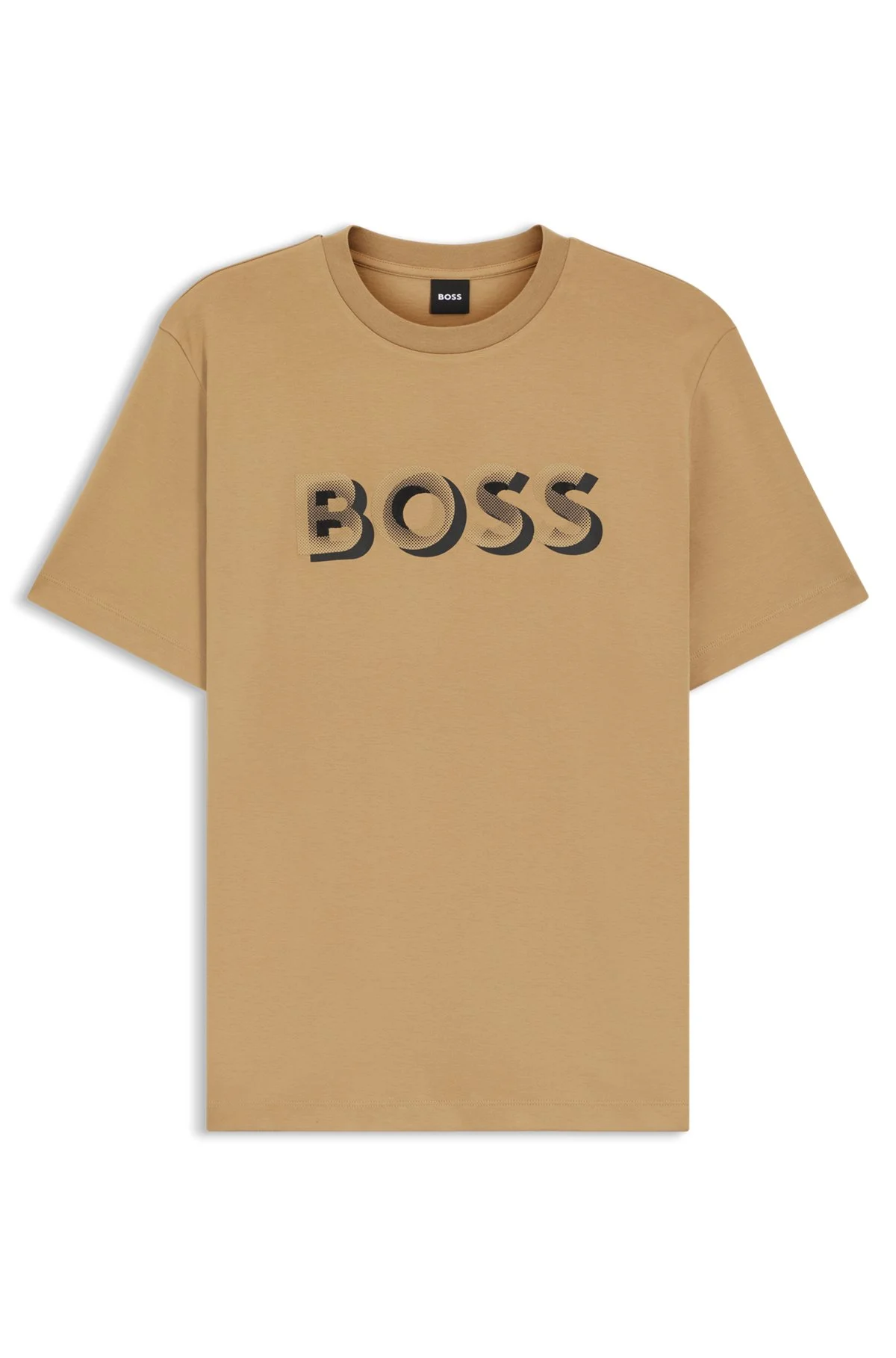 DETAILS H-Thompson 656 - 50551902 In mercerized cotton for elevated softness, this BOSS Menswear T-shirt has high-impact logo artwork to update your casual options. Timeless regular fit. Regular fit Neckline: Crew neck Short sleeves QUALITY & CARE INSTRUCTIONS Do Not Tumble Dry Machine Wash Cold Gentle Quality: 100% Cotton Iron Low Heat Do Not Bleach Do Not Dry Clean