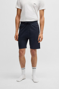SIZE AND FIT The model wears a size M and is 6'2" tall with a, 37" chest, 29" waist and 37" hips. DETAILS Authentic Shorts - 50527440 Signature shorts with a straight leg by BOSS. This regular-rise pair is crafted in soft French terry with foil-print branding on the leg. Covered waistband Drawstring Pockets bottom front: Side pockets QUALITY & CARE INSTRUCTIONS Do Not Bleach Do Not Tumble Dry Iron Medium Heat Quality: 100% Cotton Do Not Dry Clean Machine Wash Warm