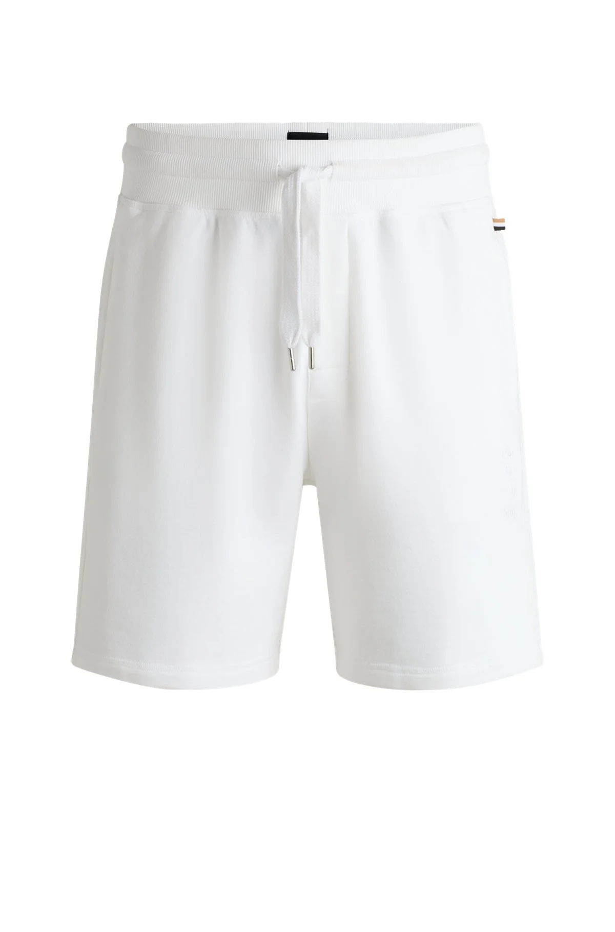 SIZE AND FIT The model wears a size M and is 6'2" tall with a, 37" chest, 29" waist and 37" hips. DETAILS David Shorts - 50540522 With ribbed trims for contrast, these BOSS Menswear shorts are a luxurious way to lounge. Peached French-terry cotton for elevated softness. Embroidered outline logo. Covered waistband Drawstring Pockets bottom front: Side pockets QUALITY & CARE INSTRUCTIONS Machine Wash Warm Do Not Dry Clean Do Not Tumble Dry Do Not Bleach Quality: 100% Cotton Iron Low Heat