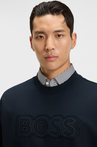 SIZE AND FIT The model wears a size M and is 6'1" tall with a, 33" chest, 31" waist and 33" hips. DETAILS C-Soleri 214 - 50543914 With fresh logo artwork, this BOSS Menswear sweatshirt is an essential layer. Cut to a straight fit in terry made from cotton. Regular fit Neckline: Crew neck Long sleeves Standard length QUALITY & CARE INSTRUCTIONS Iron Low Heat Do Not Tumble Dry Quality: 100% Cotton Do Not Bleach Do Not Dry Clean Machine Wash Cold Gentle