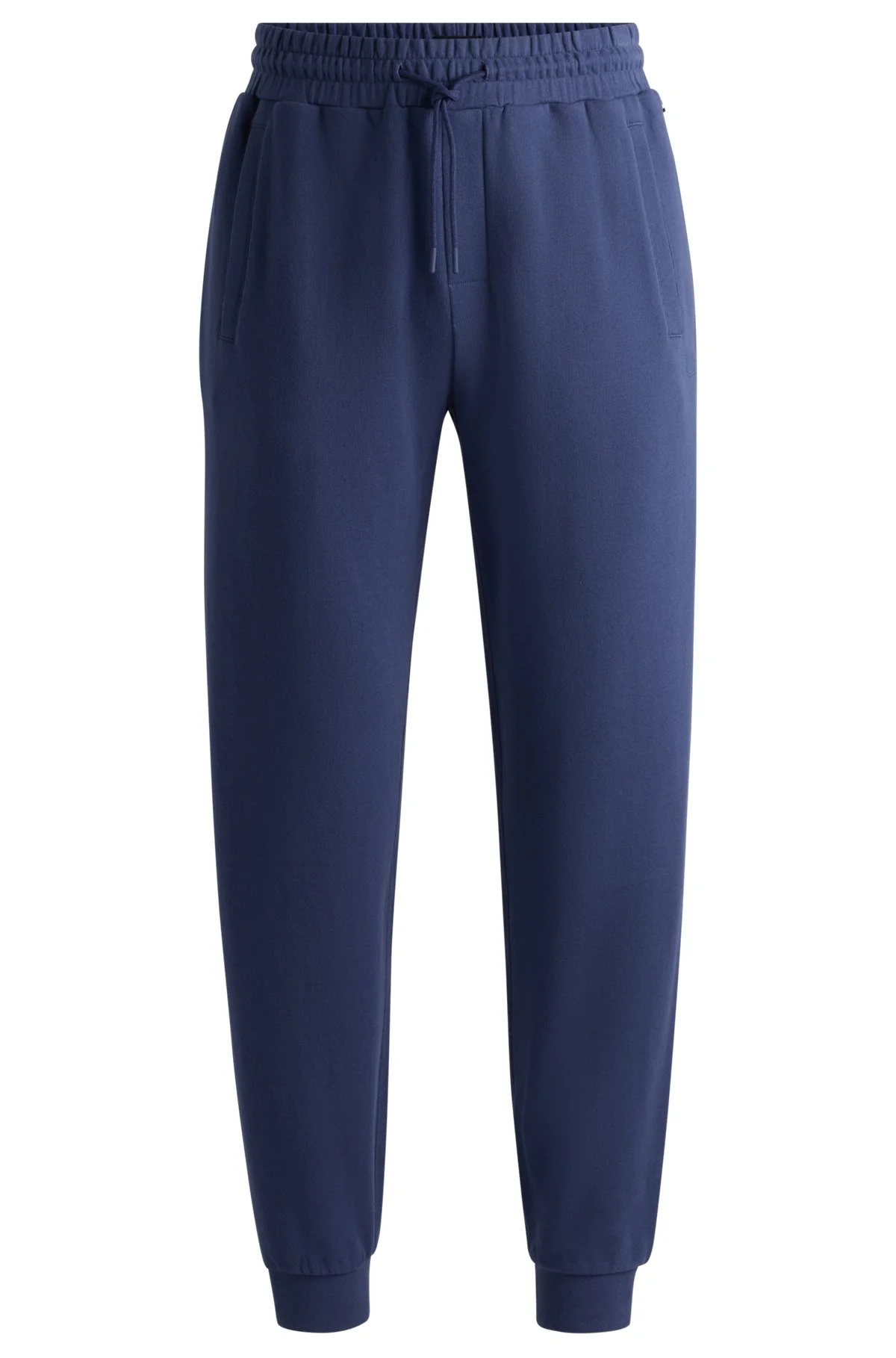 SIZE AND FIT The model wears a size M and is 6'2" tall with a, 38" chest, 29" waist and 36" hips. DETAILS Contemp Pants - 50521875 Signature tracksuit bottoms with cuffed hems by BOSS Menswear. Crafted in suede-effect terry, this pair is detailed with a flocked logo. Covered waistband Drawstring Pockets bottom front: Side pockets QUALITY & CARE INSTRUCTIONS Quality: 100% Cotton Do Not Tumble Dry Do Not Bleach Machine Wash Warm Gentle Iron Low Heat Do Not Dry Clean
