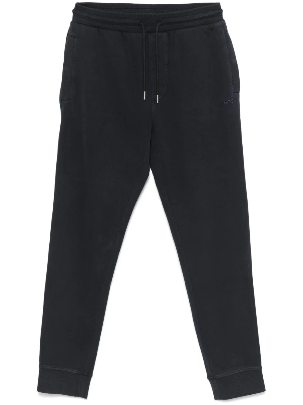 cotton track pants Highlights - Navy blue - Cotton - Jersey texture - Elasticated drawstring waistband - Embroidered logo at the leg - Two side welt pockets - Rear welt pocket - Ribbed ankles - French terry lining - Tapered leg Imported Composition Cotton 100%