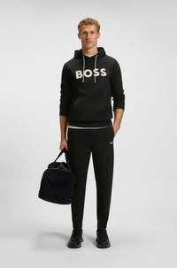 SIZE AND FIT The model wears a size M and is 6'2" tall with a, 36" chest, 31" waist and 38" hips. DETAILS Featuring a molded logo and sporty stripes, these regular-fit BOSS Menswear tracksuit bottoms are an easy building block. Cotton with stretch. Cuffed hems. Regular fit Regular rise Drawstring Pockets bottom front: Side pockets Pockets bottom back: Welt pocket Pants Zone - 50543070 QUALITY & CARE INSTRUCTIONS Do Not Dry Clean Do Not Tumble Dry Do Not Bleach Iron Low Heat Material: 62% Cotton, 33% Polyester, 5% Elastane, pocketing: 100% Polyester Machine Wash Cold Gentle