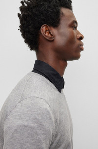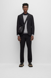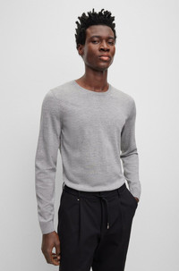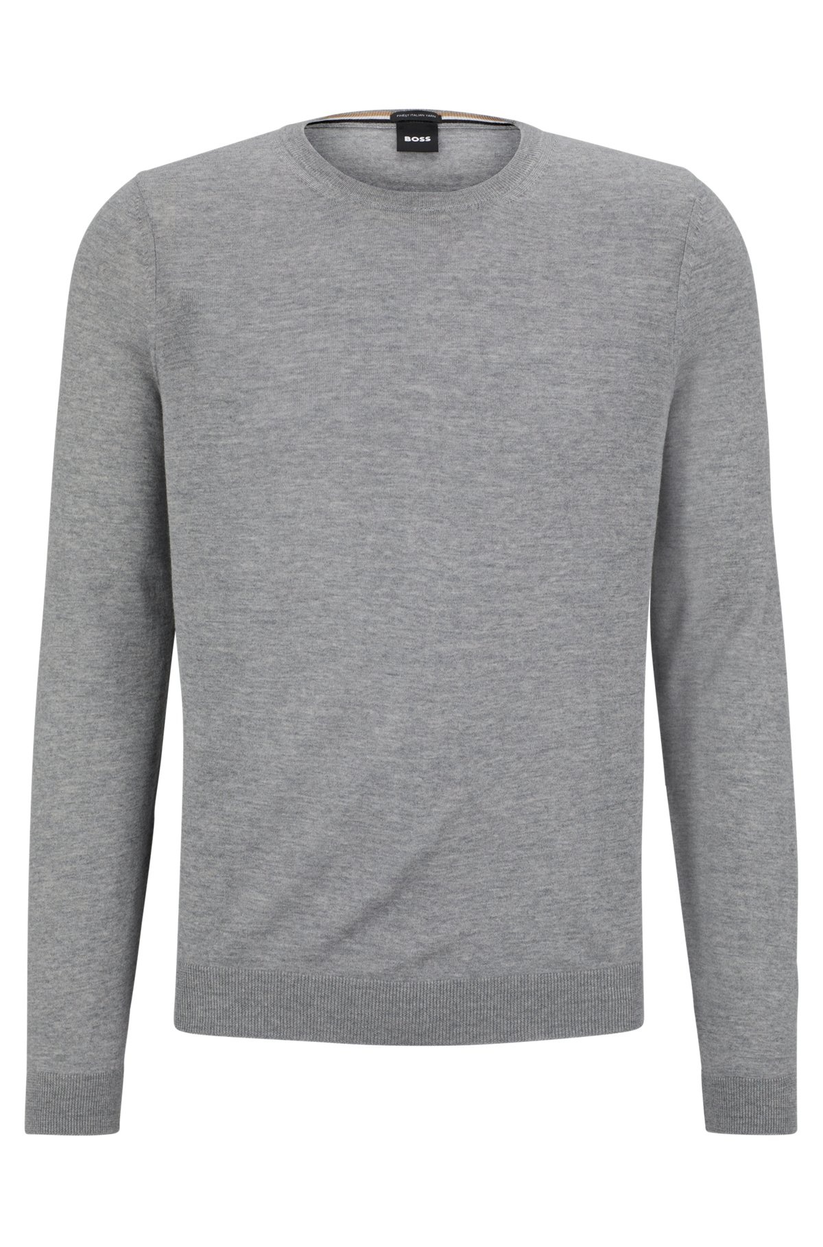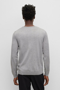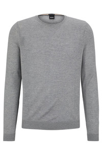 SIZE AND FIT The model wears a size L and is 6'2" tall with a, 37" chest, 29" waist and 35" hips. DETAILS Leno-P - 50468239 A soft and breathable sweater by BOSS Menswear. Cut to a slim fit, this crew-neck layer is crafted in merino wool. Neckline: Crew neck Long sleeves Standard length QUALITY & CARE INSTRUCTIONS Quality: 100% Virgin wool Iron Medium Heat Cold, gentle machine wash; reduced spin speed. Do Not Bleach Do Not Tumble Dry Dry Clean Only