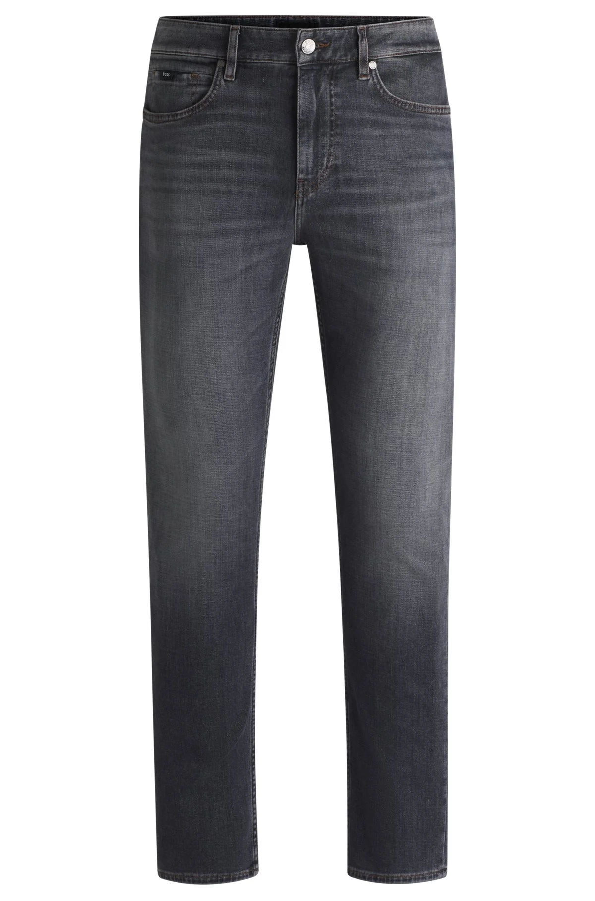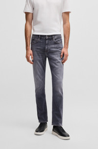 SIZE AND FIT The model wears a size 32/32 and is 6'2" tall with a, 0" chest, 30" waist and 35" hips. DETAILS C-Delaware - 50532606 Super-soft jeans in stretch denim by BOSS Menswear. Delivered in a gray tone, this pair is cut to a slim fit with a regular rise. Slim fit Regular rise Button and zip closure Pockets bottom front: Side pockets Slim leg Pockets bottom back: Patch pocket Standard length Fit foot width: 35,4 cm (13.9 inches) QUALITY & CARE INSTRUCTIONS Machine Wash Cold Gentle Quality: 92% Cotton, 6% Elastomultiester, 2% Elastane Iron Medium Heat Do Not Bleach Do Not Tumble Dry Do Not Dry Clean